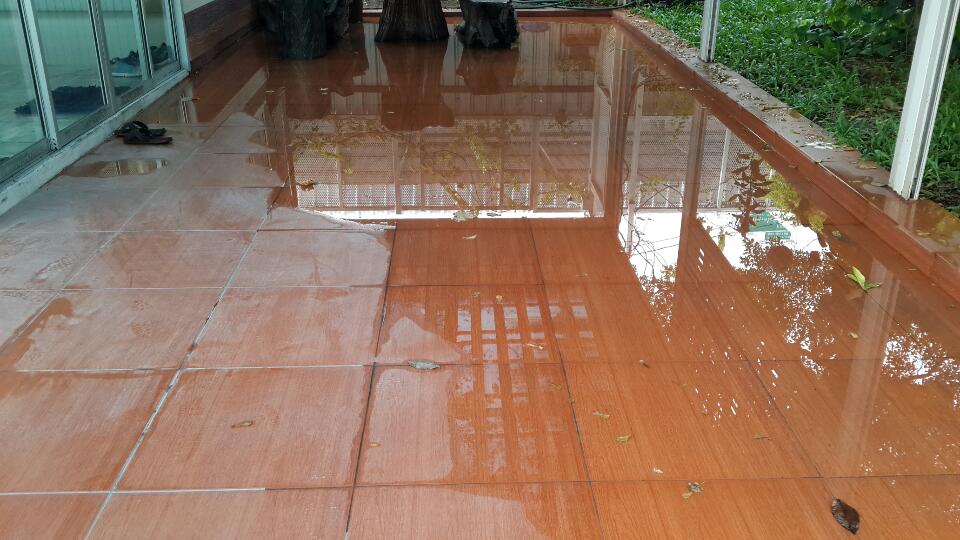 ตอนนี้ปัญหาโผล่มาละครับ คือ น้ำขังครับ เนื่องจากฝนตกมา แล้วพื้นมันไม่เอียงลาดออก วิธีแก้คือต้องทำอย่างไรครับ
