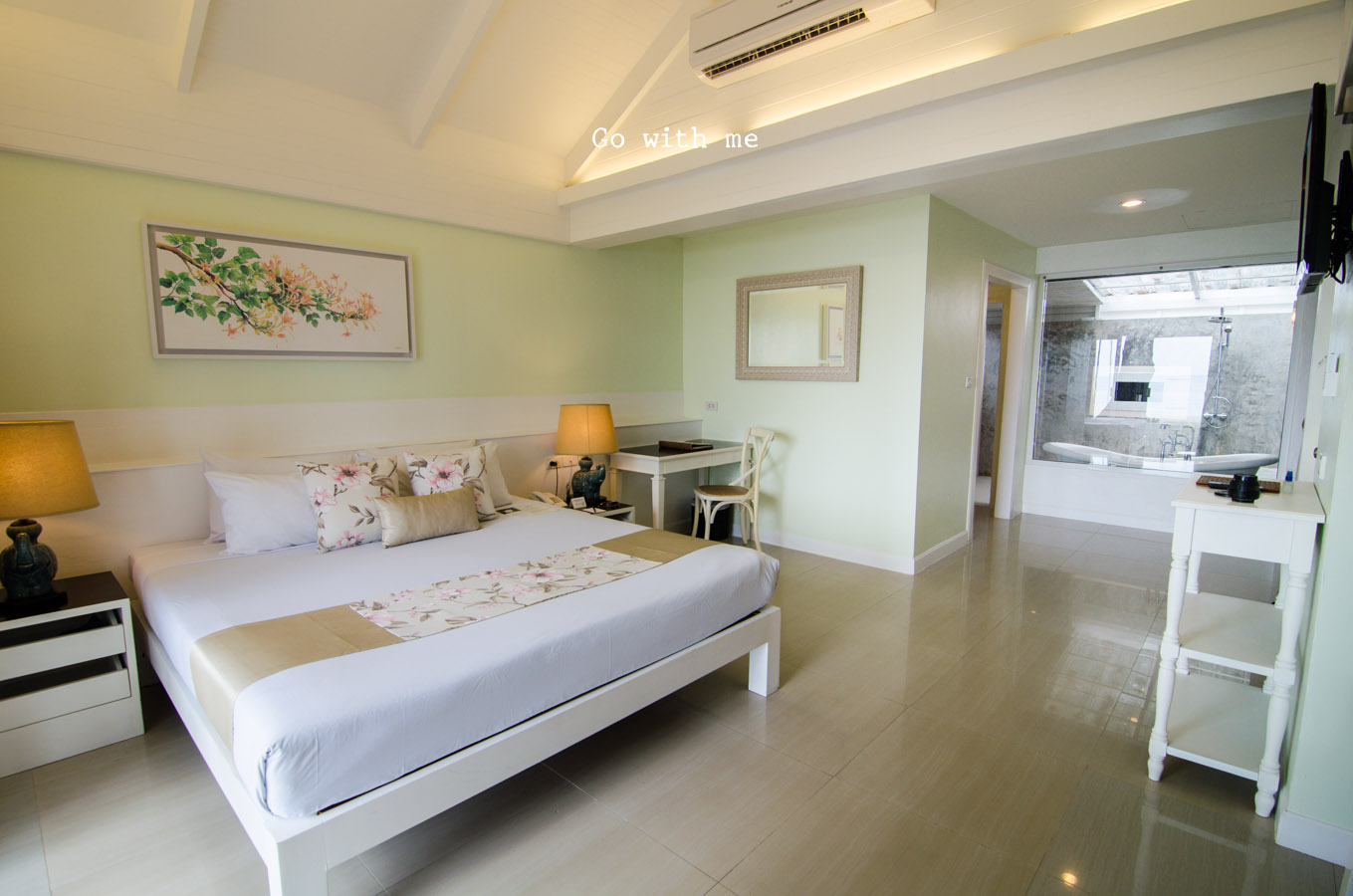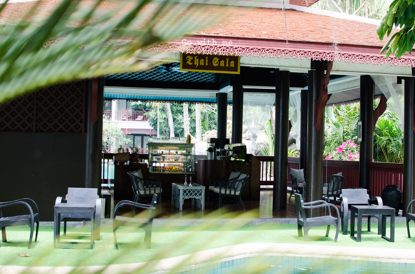 บรรยากาศคือฉีกออกจากความคำว่า บีชมากๆ อารมณ์เหมือนเข้ามาชมสวนดอกไม้ ระหว่างทางจะเป็นห้องพัก พูลวิว ที่ตกแต่งแบบทรงเรือนไทย อารมณ์ประมาณว่ามาเที่ยวภาคเหนือก่อน แล้วลงใต้สู่ทะเล
