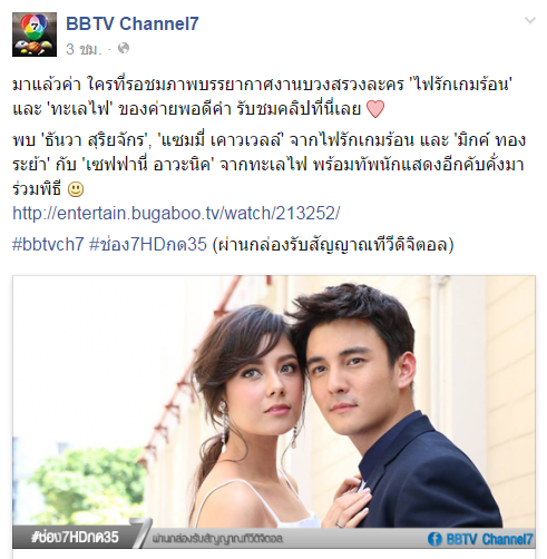 บวงสรวงละคร ไฟรักเกมร้อน + ทะเลไฟ บวงสรวงละคร "ไฟรักเกมร้อน" & "ทะเลไฟ" https://www.youtube.com/watch?v=Dbe2wDzxQYk สัมภาษณ์ @ บวงสรวงละคร "ไฟรักเกมร้อน" &