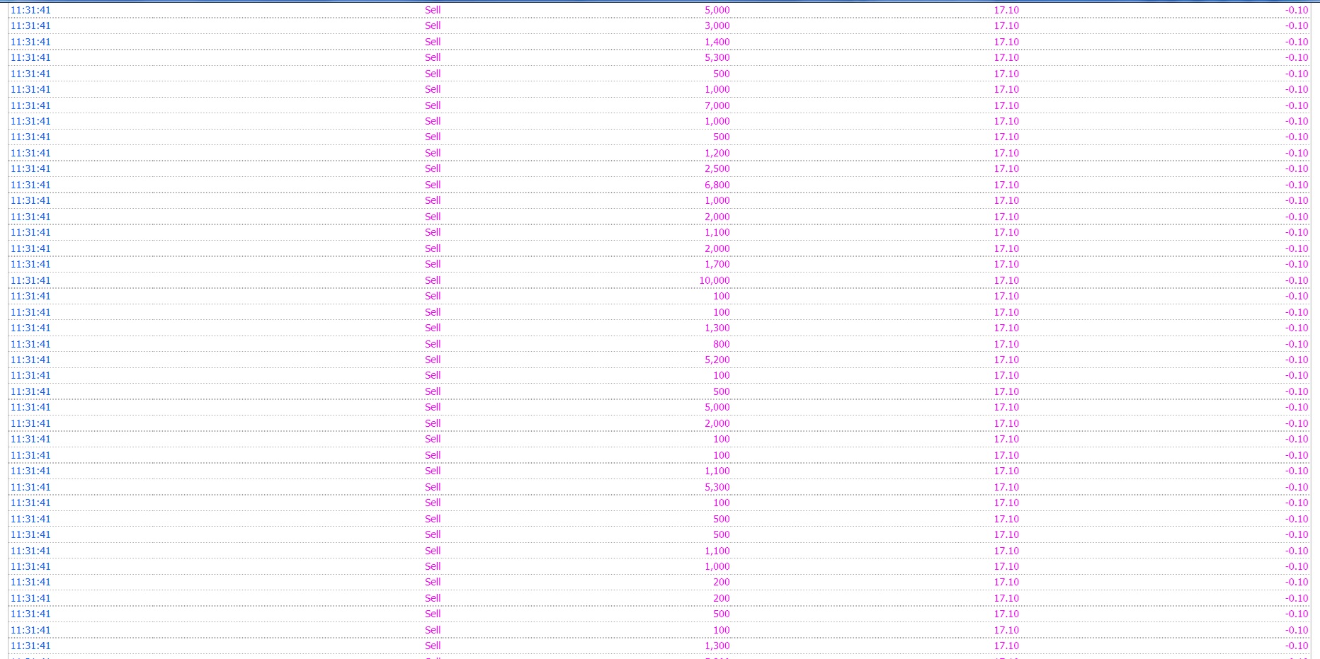 แต่จู่ๆช่วงเวลา 11:31:35-11:31:41 น ก็มีการขายทีเดียวจำนวนมากๆกว่า 6 ล้านหุ้น แต่แบ่งเป็นย่อยๆ