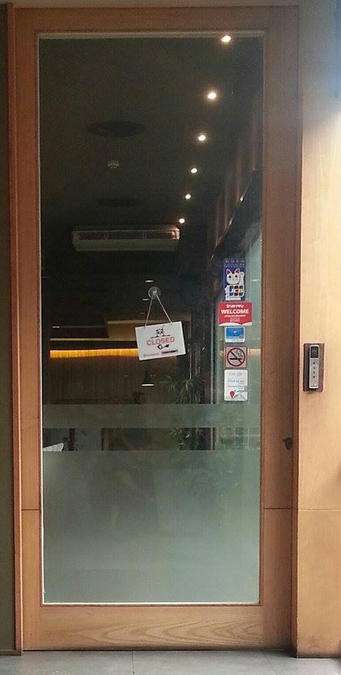 รอจนด้านในถูพื้นเสร็จ เปิดประตูออกมาเชิญเข้าร้าน