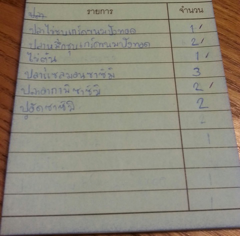 สั่งปลาดิบไป 2 - 2 - 1 - 1 ไม่ใช่เลข 60 - 16 - 16 นะคะ อันนั้นมันเป็นการกดทับจากใบก่อนหน้า
