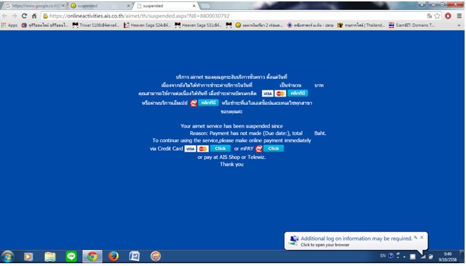 อีกอย่างนะ คือเรื่องเข้า E-Service มันไม่สะดวก กับพวก Ipad เลย มันรับ ข้อความไม่ได้ ผมก็ไม่ชอบไปห้างบ่อย มักชอบใช้ พวกบริการจ่ายผ่าน E-Service ต่างๆ มากกว่า อันนี้ขอแนะนำครับ