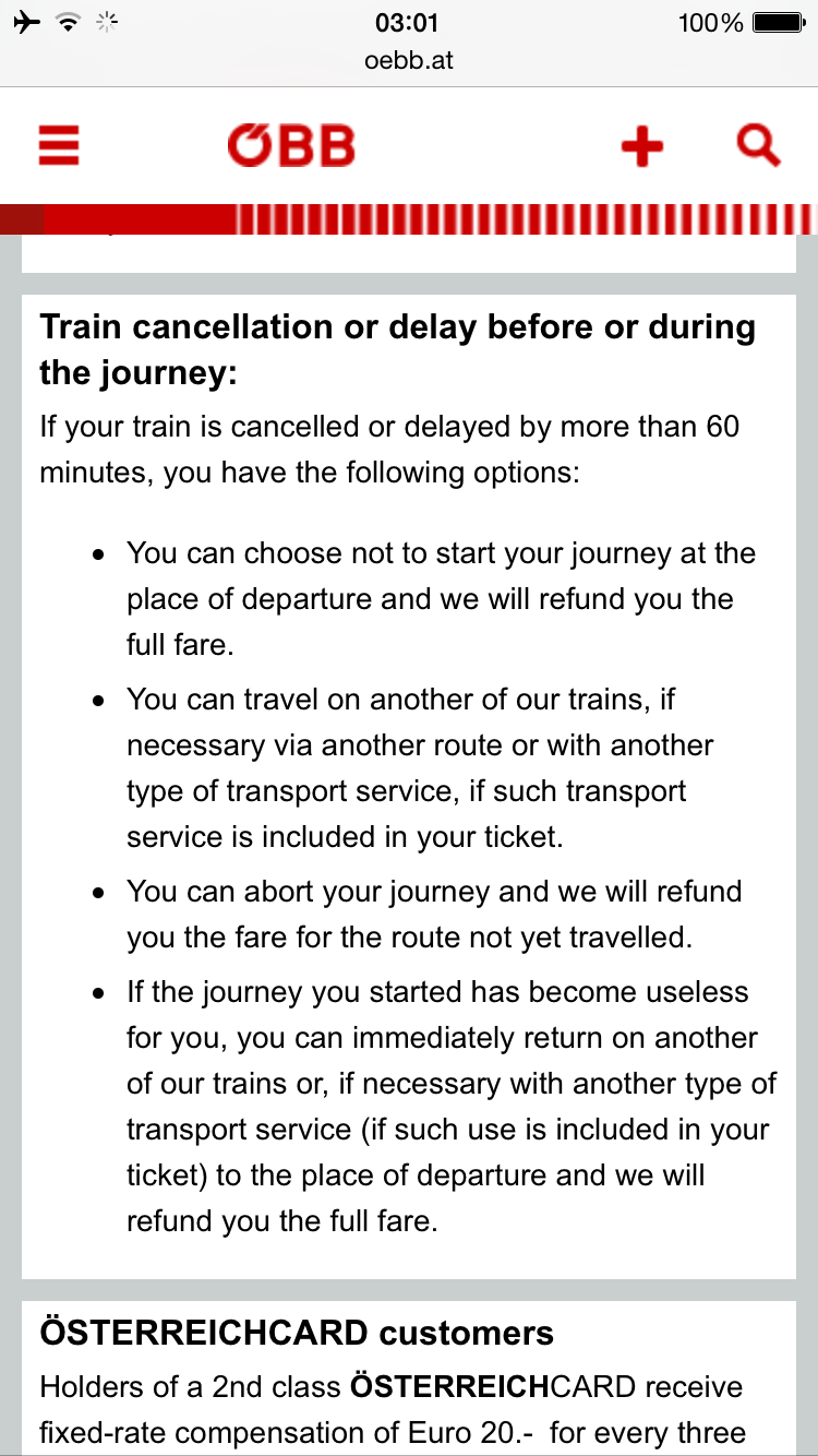 ขอคืนเงินค่าตั๋วรถไฟ OBB เนื่องจากรถไฟยกเลิก