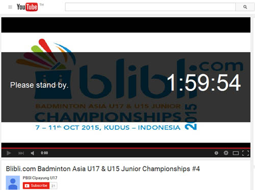 • Live Stream on Youtube PBSI Cipayung U15 (court 1) : https://www.youtube.com/watch?v=QF5H_Yj7lXg