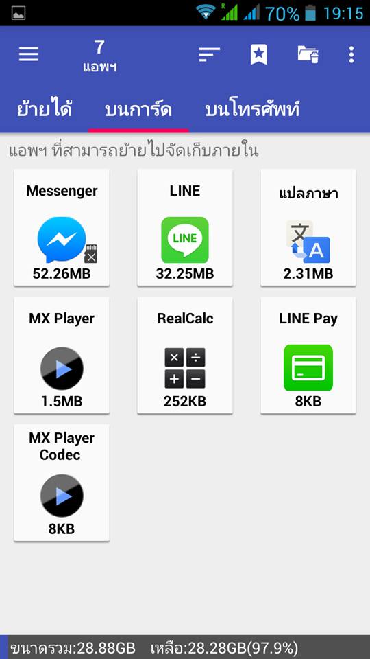 พื้นที่แทบไม่เหลือให้โหลดอะไรเลยครับ แอฟที่ย้ายได้ ก็ย้ายไปที่ SD หมดแล้วครับ