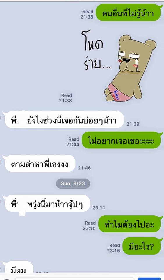 เรื่องเกิดขึ้นเมื่อ… ผมเป็นนักศึกษาอยู่มหาวิทยาลัยเอกชนแห่งหนึ่งย่านวิภาวดี ไม่ต้องเอ่ยชื่อคงรู้จักกันทั่วไป ผมเป็นคนคนหนึ่งที่ชอบทำกิจกรรมทำงานpart-time ทำถึงขึ้นแบบไม่มีเวลาเลยละครับ เพราะปกติเป็นคนอยู่นิ่งไม่ได้ ถ้านิ่งเมื่อไรฟุ้งซ่านครับ เรื่องเกิดขึ้นตอนผมขึ้นปี 3 มอผมถือว่าเป็นมอกิจกรรมเลยก็ว่าได้ครับ มีกิจกรรมให้ทำตลอดทั้งปี และการเปิดเทอมแรกของภาคการศึกษาน้องใหม่ก็จะมีการรับน้องเปิดซุ้มแบบทั่วๆไปแล่ะครับ แต่เราจะแบ่งเป็นสองฝั่งครับ จะมีเชียรแสตน กับ หลีดมือ ในวันที่เปิดซุ้มส่วนมากน้อง(ปี2)สาขาก็จะทำกันเองแล่ะ แต่ในส่วนของหลีดนี้ไม่ใช่ครับ ต้องมีรุ่นพี่ครบทั้งชั้นปี เพื่อมาดูศักยภาพของน้องๆว่าทำได้รึป่าวอะไรประมาณนี้ พูดง่ายๆมันกลายเป็นครอบครัวหลีดไปแล้ว ถ้าขาดปีไหนไปแล้วมันจะหงอยเหงา ฮ่า ในวันที่คัดเลือกหลีด ก็ได้หลีดครบตามจำนวนที่ต้องการ ก็ถึงฤดูการที่จะเข้มข้นมากขึ้นละครับ ซ้อมโหดซ้อมดุซ้อมแบบบ้าคลั่งเลยจริงๆ แต่ในการซ้อมของพวกเรามักจะแฝงไปด้วยมิตรภาพและความรักให้แก่น้องๆ เพื่อจะได้เป็นกำลังใจว่ายังมีพวกพี่ๆอยู่ข้างๆนะ จำได้ว่ามีหลีด 11 คน ชาย7 ญ 4 น้องทุกคนนี้น่ารักสุดๆทั้งหน้าตาและนิสัย ปกติน้องจะสนิทสุดๆกับปี2 แต่ไม่รู้ทำไมปีนั้นถึงสนิทกันกับปี3 ซะมากกว่า เลิกซ้อมดึกๆก็จะมีไปกินข้าวกันบ้าง สังสรรค์กันบ้างแถวๆหน้ามอ ความสัมพันธ์ของพวกเราก็เริ่มสนิทกันขึ้นเรื่อยๆ ส่วนตัวผมเองสนิทกับน้องคนหนึ่งที่เป็นหลีดสนิทกันมาก คือน้องเขามีอะไรก็จะมาถามผมตลอด เช่นการบ้านตรงนี้ทำยังไง ตลาดที่นั้นที่นี้เปิดปิดกี่โมง ผมก็ตอบปกติครับ หลังๆมาเริ่มหนักขึ้นครับ ทักไลน์มาตลอดเลย “ทำอะไรอยู่อ่าพี่” “กินข้าวยังอะพี่” บวกผมก็เป็นคนกันเองอยู่แล้วใครทักมาคุยด้วยผมตอบหมด ปกติซ้อมหลีดเสร็จผมก็ถามน้องทางไลน์กลุ่มตลอดว่าถึงบ้านกันยังนอนพักผ่อนเยอะๆนะ แต่น้องเขากับต้อง ทักไลน์แยกมาคุยกับผมตลอด จนผมจับครวามรู้สึกตัวเองได้ละว่าเริ่มหวั่นๆ (บอกเลยผมเป็นคนหวั่นไหวง่ายครับ) ผมก็ไม่รู้คิดยังไงก็บ้าๆบอๆตามๆไป ทักไปปลุกตอนเช้าบ้าง ตามคำเรียกร้อง น้องเขาก่อนนอนก็ต้องบอกฝันดีผมก่อน แบบรู้สึกจักกะจี้มากๆเลยครับ55555 หลังจากที่การแข่งขันของคณะจบลง ทุกอย่างในกิจกรรมหลีดจบสิ้น ผมลึกๆแล้วใจหายมากเลยครับ ตลอดเกือบ2เดือนที่อยู่ด้วยกันเกือบทุกช่วงเวลาแต่จะไม่ได้เจอน้องๆโดยเฉพาะน้องเขา55555(ตอนนั้นผมเริ่มหวั่นไหวละครับ) แต่มันไม่จบสิครับ เอ้ะรึผมไม่จบ หลังๆน้องเขาก็ไลน์หา