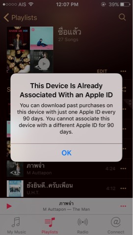 คือใช้แอปเปิ้ลไอดี สโตร์ไทยไปซื้อเพลงในไอทูนสโตร์ มาฟังก็ฟังได้เสียเงินปกติ แต่พอเปลี่ยน แอปเปิ้ลไอดี เป็นสโตร์สหรัฐเพื่อซื้อแอป แล้วพอเปลี่ยนมาเป็นสโตร์ไทยเหมือนเดิมมันเล่นไม่ได้ครับ รบกวนช่วยชี้ทางแก้ใชให้ด้วยครับ