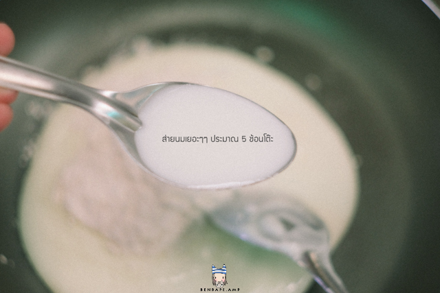 5.ใส่นมไปสัก 5~6 ช้อนโต๊ะ