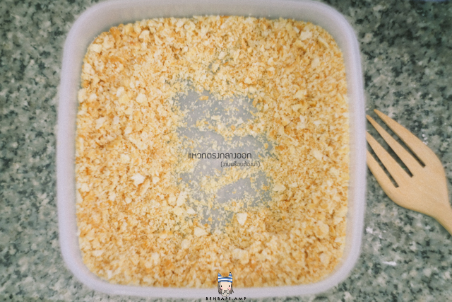11.มาจัดการแครกเกอร์กันต่อ แหวกตรงกลางให้สวยงาม แล้วเทมาการีนลงไป