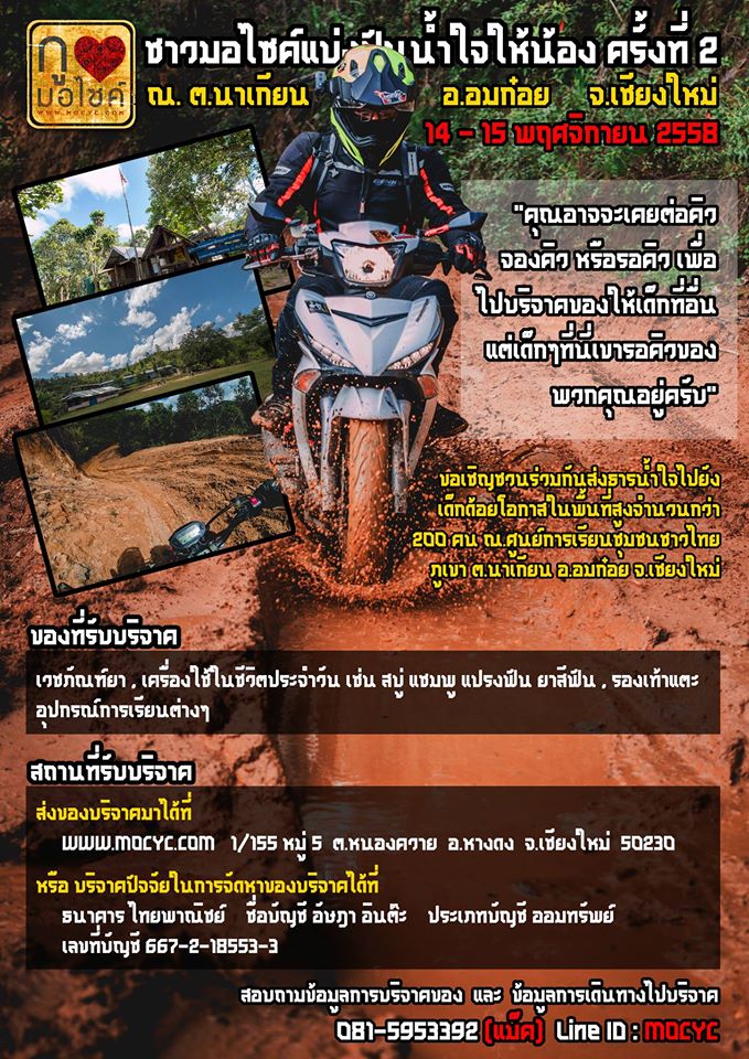 และในปีนี้การกลับมาของโครงการ "ชาวมอไซค์แบ่งปันน้ำใจให้น้อง ครั้งที่ 2" ก็เริ่มต้นขึ้นอีกครั้ง โดยในปีนี้เราได้