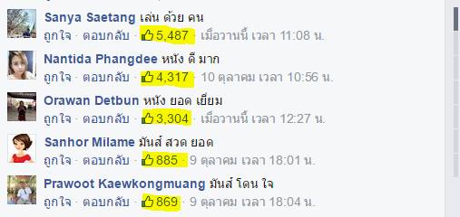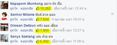 **สำหรับผู้ที่มีจำนวนไลค์สูงสุด 10 อันดับก่อนหน้านี้ ทางบริษัทฯ จะทำการส่ง DVD ของรางวัล เพื่อเป็นการขออภัยในครั้งนี้