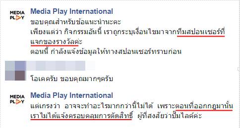 ทั้งนี้ทางทีมงานขอน้อมรับข้อผิดพลาดทั้งหมด และจะนำมาปรับปรุงในการจัดกิจกรรมครั้งต่อๆ ไป ขอขอบพระคุณ ข้อแนะนำและข้อติชมจากทุกๆ ท่านที่ Inbox และ โทรมาเป็นจำนวนมาก ^^" ทางทีมงานขอขอบคุณทุกท่านที่ให้การสนับสนุนกับทาง Media Play ตลอด