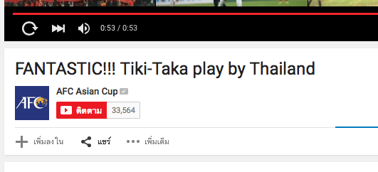 AFC อัพลูกที่ 3 ของไทย ใน youtube FANTASTIC!!! Tiki-Taka play by Thailand