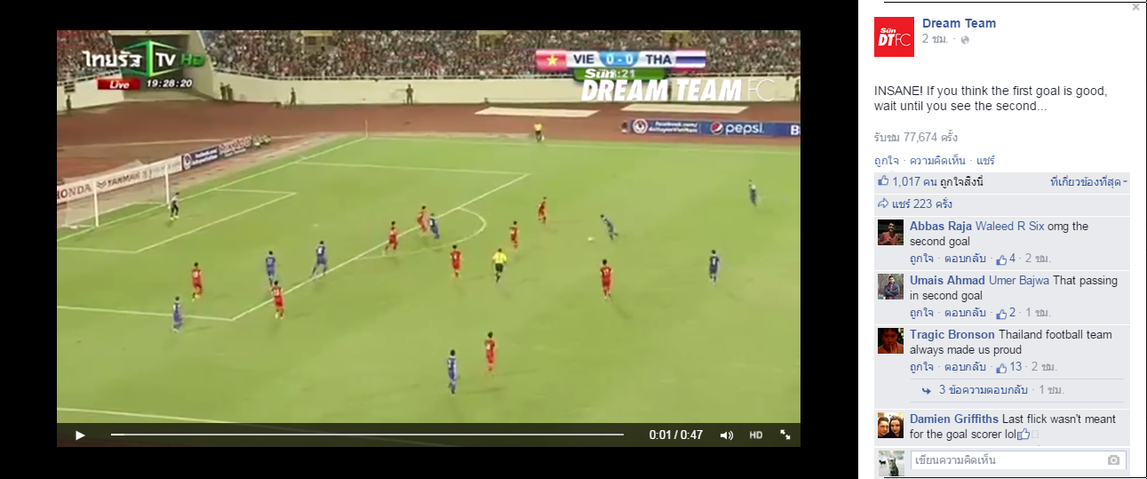 แต่มาถึงจุดๆนี้ แค่จะบอกว่า หน้าบานและดีใจ มากๆค่ะ เห็นชาวต่างชาติเค้าแท็กเพื่อนมาดูคลิปแล้วแบบ This is Thai football!!