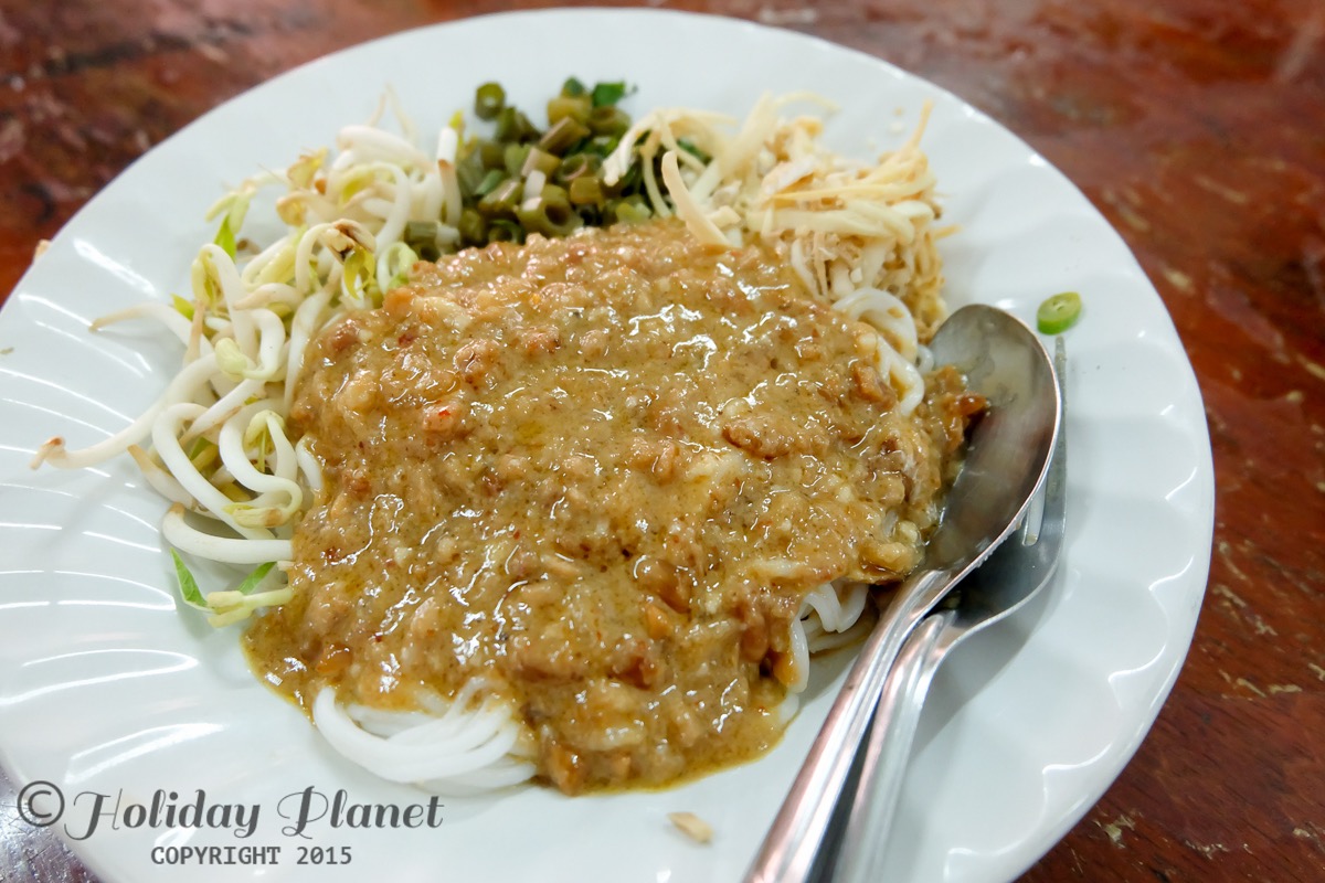 อิ่มอร่อยกับ หมูสะเต๊ะ ขนมจีน น้ำยา น้ำงี้ยว แกงเขียวหวาน รวมถึงมี ข้าวซอย ปลาดุกผัดเผ็ด และ อาหารตามสั่งไว้บริการด้วยครับ