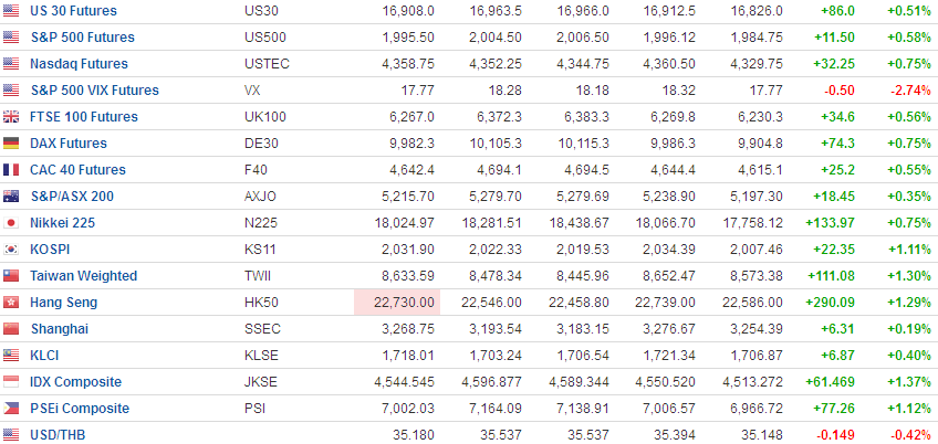 DOW เขียว เอเชียเขียวปี๋ บาทแข็ง , BOND YLD ลง หุ้นไทยวันนี้ ต้องมี +40 UP