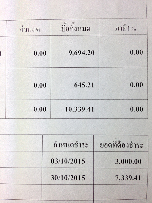 ในรูปเป็นราคาเดิมที่ตกลงกันไว้ ชำระเงินงวดแรกแล้ว วันที่ 3 ต.ค. 2015