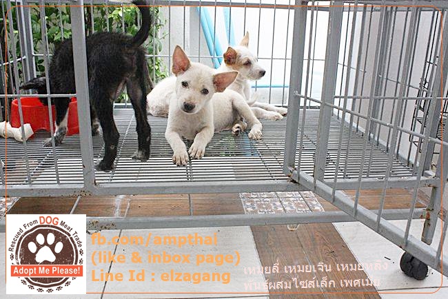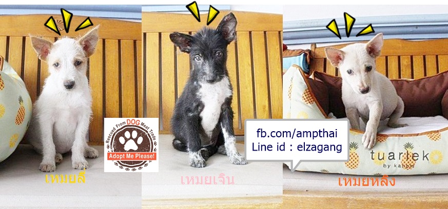 เด็กทั้งสาม เป็นเพศเมีย ถูกทิ้งพร้อมกันที่วัด สังเกตว่าฟันขึ้นยาวมากแล้ว อายุประมาณ 3 เดือน คาดว่าเป็นพันธุ์ผสมไซส์เล็ก โตมาไม่น่าเกิน 10 กก.หาบ้านที่พร้อมดูแลและพร้อมทำหมันในอีกสองเดือนข้างหน้า พร้อมดูแลแบบเป็นสมาชิกในครอบครัว พิจารณาเป็นบ้านส่วนตัวมีรั้วรอบขอบชิด ปรึกษาสมาชิกในบ้าน ส่งข้อมูลรูปบ้าน รั้ว หมาเดิมถ้ามี รายละเอียดการเลี้ยงดูคร่าวๆมาพูดคุยได้ที่ กล่องข้อความเพจ >> fb.com/ampthai (like & inbox page) หรือ Line ID : elzagang/0818226558