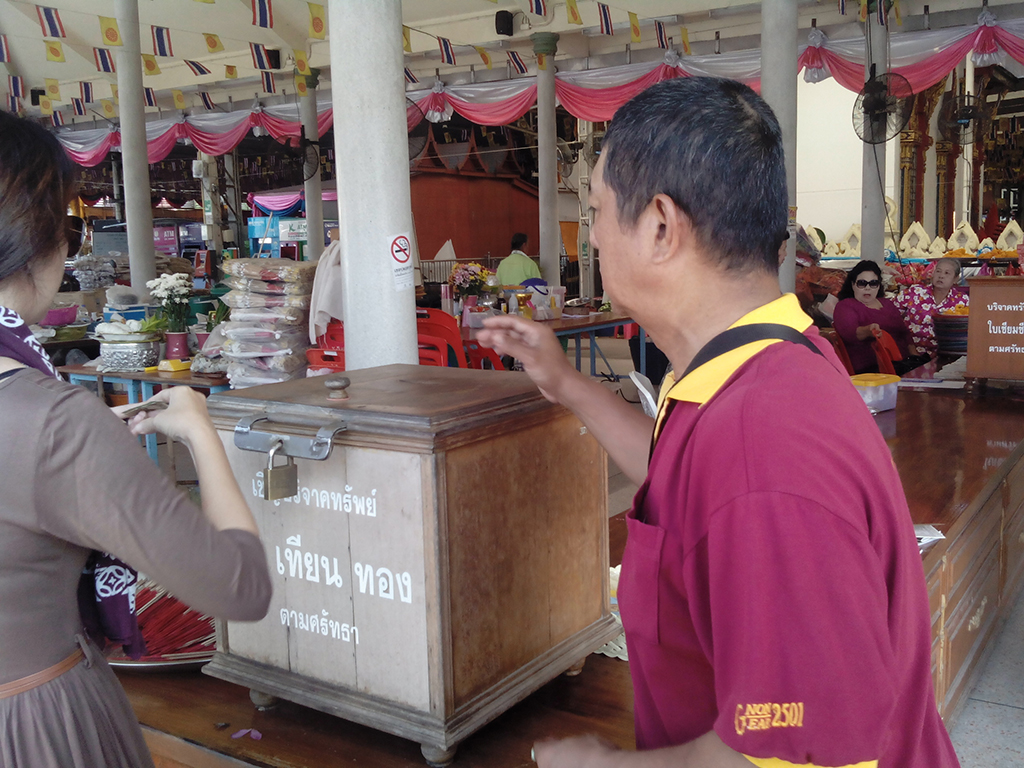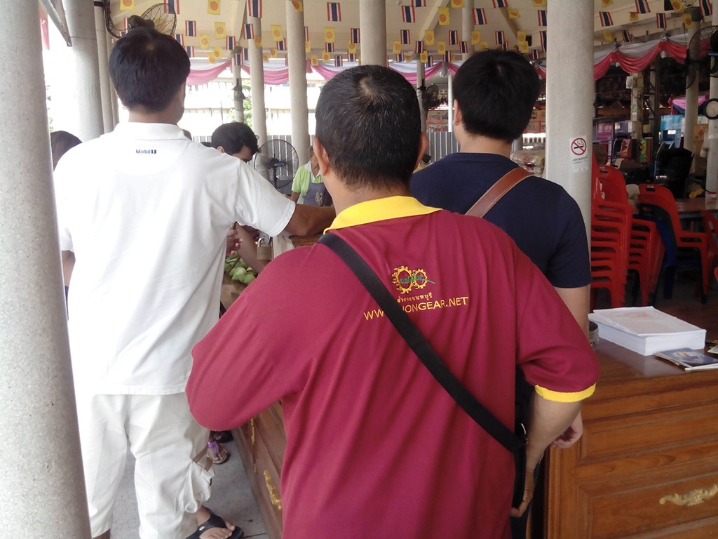 จากนั้นก็ตามทั่วไปครับ ซื้อธูปเทียนดอกไม้ ไหว้พระตามภาษาคนไทย