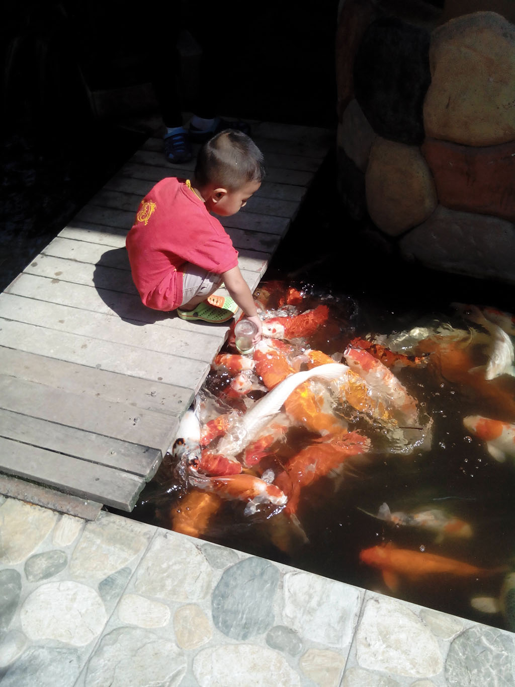 ปลาที่วัดสวยมากครับ มีเด็กกำลังเอานมให้ปลาด้วย ^^