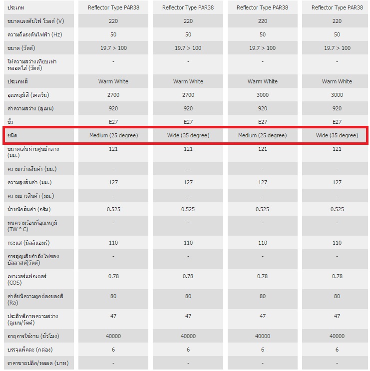 จากที่ลองหาในเน็ตดูอยากได้หลอด LED เกลียว E27 PAR38 36W(มันน่าจะสูงสุดแล้วสำหรับLEDรุ่นนี้)