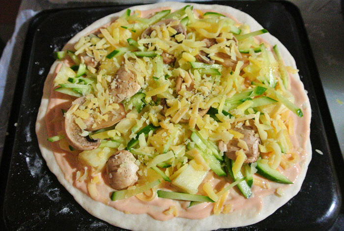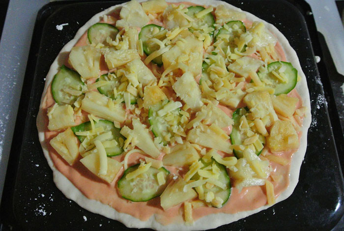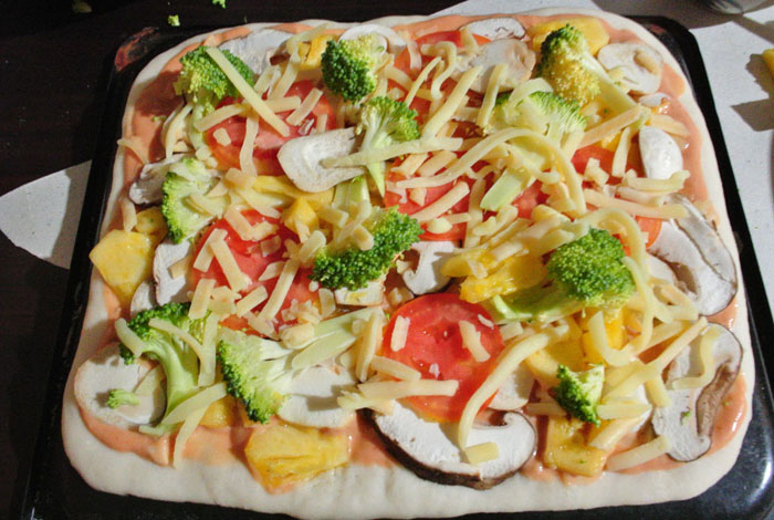 หน้าพิซซ่าใช้วัตถุดิบตามมีตามเกิดค่ะ งกชีสด้วยนะ 55