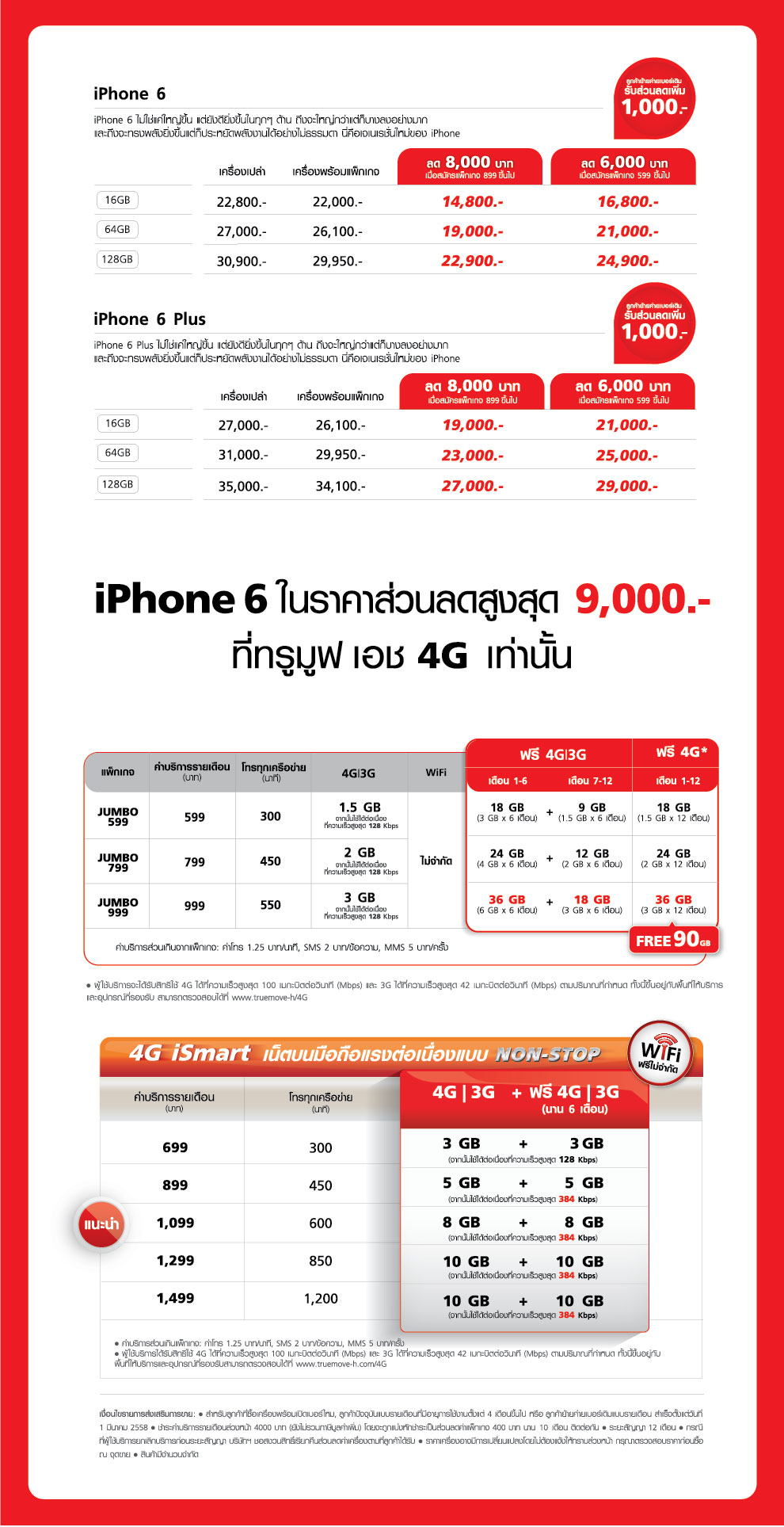 Truemove จัดโปรโมชั่น iPhone 6 / iPhone 6 Plus ลูกค้าย้ายค่ายเบอร์เดิม ลดสูงสุด 6,000 บาท