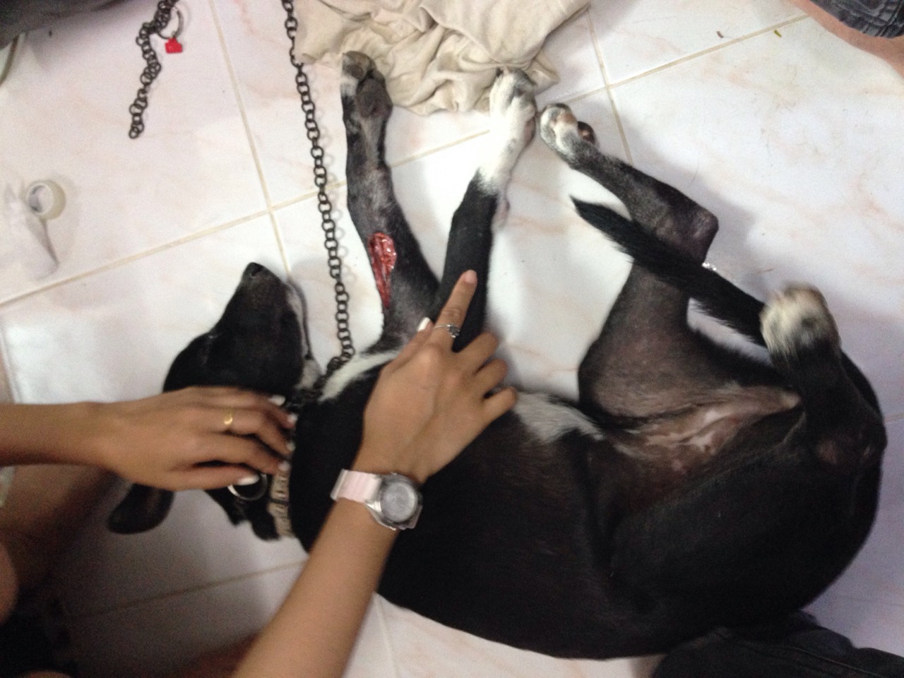 เจอลูกหมาสภาพอย่างนี้ค่ะ แผลน่ากลัวมาก ไม่รู้ไปโดนอะไรมา อยากพาไปหาหมอ แต่กลัวจะรับค่าใช้จ่ายไม่ไหวจริง ตอนนี้ทำได้แค่ทายาให้มัน แล้วก็ไปซื้อยาแก้อักเสบของหมามาให้กินค่ะ ใครใจบุญช่วยรับเคสนี้ไปรักษาหน่อยเถอะค่ะ กลัวเค้าจะไม่ไหว กลัวแผลติดเชื้อ หรือช่วยแนะนำวิธีรักษาที่ถูกก็ได้ค่ะ จะพยายามเต็มที่เลย