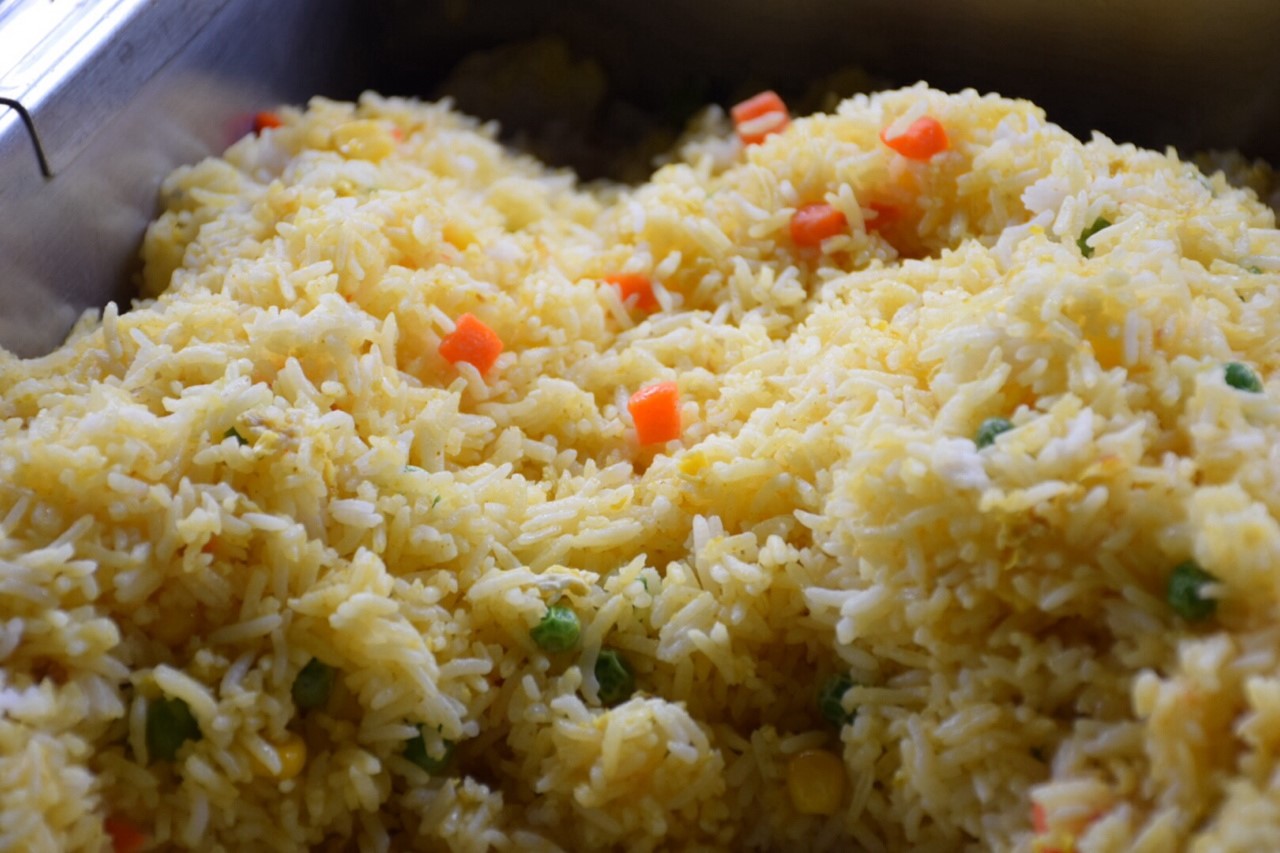 เช้านี้ประกอบด้วยข้าวผัด ข้าวต้ม ไส้กรอก แฮม แพนเค้ก ขนมปังปิ้ง ไข่ดาว กาแฟโอวัลติน น้ำส้ม