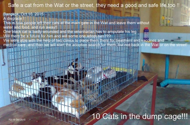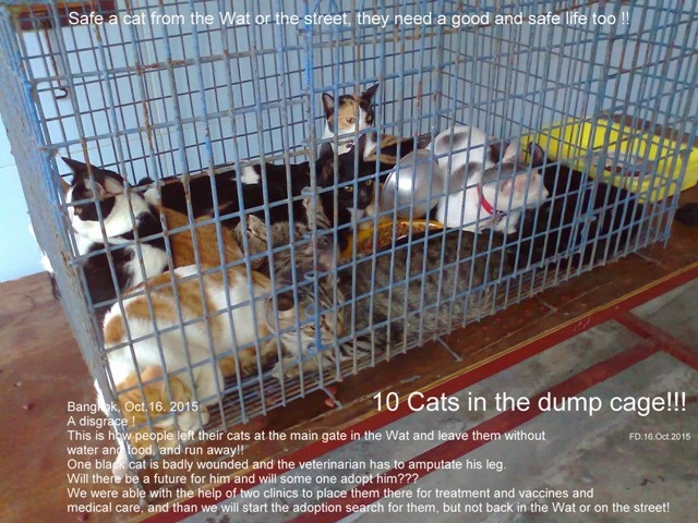 มีคน ??? เอาแมวกลุ่มนี้ใส่กรงมาทิ้งไว้ รวมทั้งสิ้น 10 ตัว ทิ้งไว้ที่ประตูทางเข้าวัด