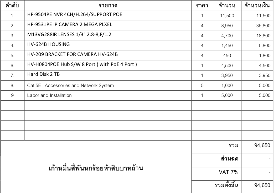 ช่วยดูให้หน่อยค่ะว่าราคาเป็นไงบ้าง แพงไปหรือป่าวค่ะ มีเพิ่มค่าเดินท่อกันหนูกัดอีก 3,500 สำหรับ 8 ตัว รวมแล้ว 25,000 บาท