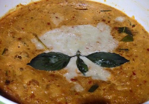 ไข่เป็ด 3 ฟอง พริกแกงเผ็ด 1 ช้อนโต๊ะ เนื้อปลาทูนา 3/4 ถ้วย ใบมะกรูดซอย ตีให้เข้ากัน นำไปทอด อาหารจานนี้คล้ายกับห่อหมก เพราะว่า ห่อหมก จะมีของเหลวเป็น กะทิ ผสม ไข่ เพื่อให้นึ่งจ