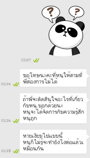 สักพักเราก็ส่งแชทไปหาเขาแต่เขาก็ตอบแค่สั้นๆ แล้วก็อ่านไม่ตอบ แล้วเขาก็เงียบหายไปเลย ทั้งๆ ที่ออนไลน์ก็ไม่ทักเลย