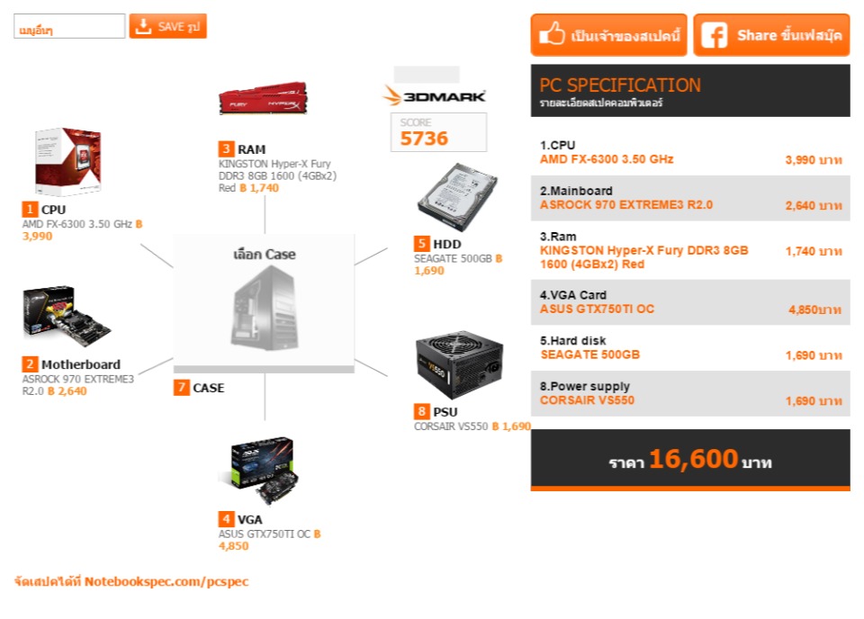 1. CPU intel i3 3220 3.3 GHz 2. Mainboard H61M-S2P R3 3. VGA GTA 650 4. RAM DDR3 4GB /800 5. PSU xfx pro 550w อัปเดต ไปทางไหนดี ( เล่นเกม ) งบ 20000