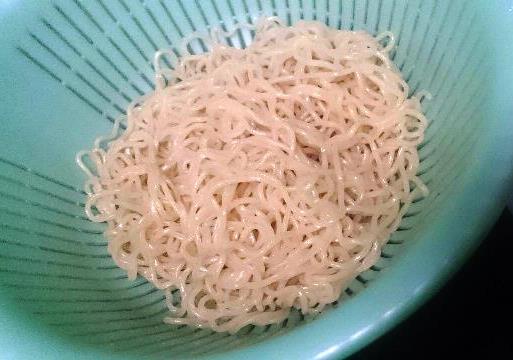 1. ลวกเส้นหมี่ เราใช้หมี่เหลืองที่ขายทั่วไป แบบที่ใช้ทำก๋วยเตี๋ยวค่ะ เส้นแบบญี่ปุ่นแพงเกิ๊น