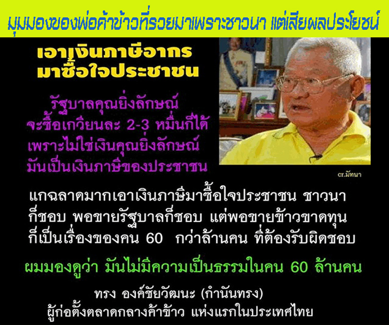 ✿ นี่คือมุมมองของ "พ่อค้าข้าว" ที่รวยมาเพราะชาวนา แต่ "โครงการรับจำนำข้าว" ทำให้เสียผลประโยชน์