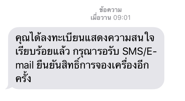 โดยเพื่อนๆที่ได้ทำการลงทะเบียนแสดงความสนใจ ก็จะได้รับ SMS และ E-Mail อย่างใดอย่างหนึ่งดังนี้!