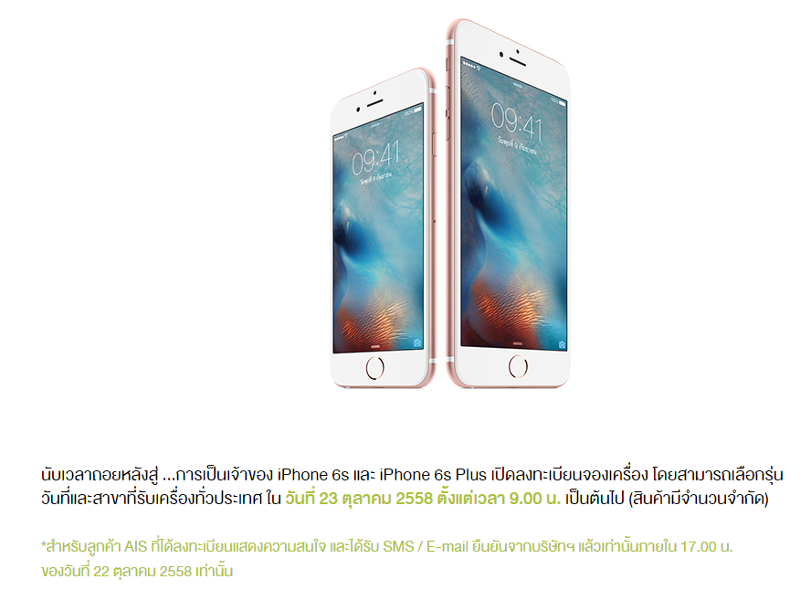 จากการที่ผู้ให้บริการเครือข่าย AIS ได้เปิดให้ลงทะเบียนแสดงความสนใจ iPhone 6s และ iPhone 6s Plus