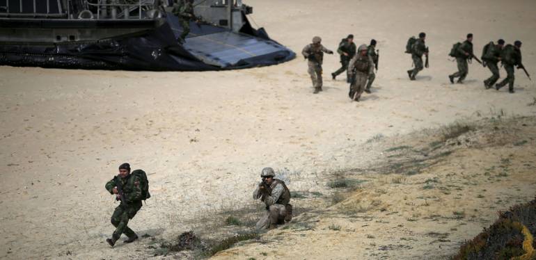 นาวิกโยธินสหรัฐฯ ซ้อมยกพลขึ้นบก ที่หาดราโปซ่า มีดิอา ในโปรตุเกส