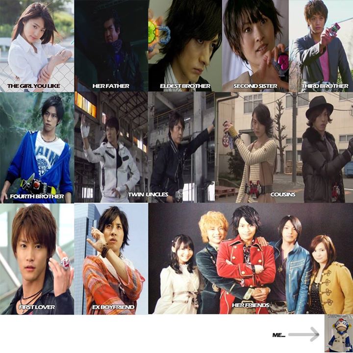 ผู้หญิงที่คุณชอบ - พ่อของเธอ(ไรเดอร์อิจิโกะ) - พี่ชายคนโตของเธอ(เฮียเมล่อน) - พี่สาวคนที่สองของเธอ(สาวลูกท้อ) - พี่ชายคนที่สามของเธอ(เกรียนบาร์โค้ด)