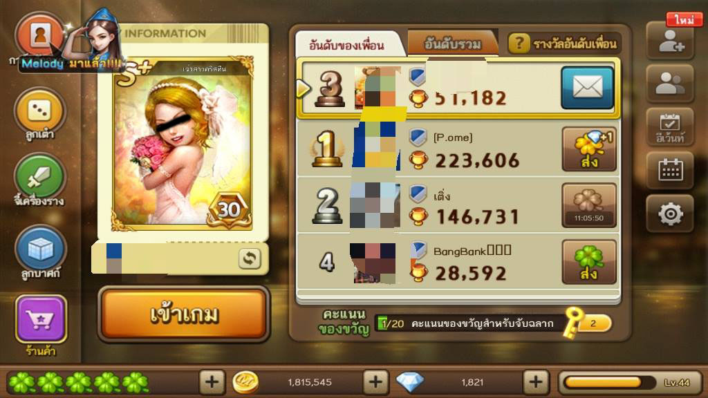 เพิ่มเพื่อนเกมเศรษฐีเกาหลีกันค่ะ
