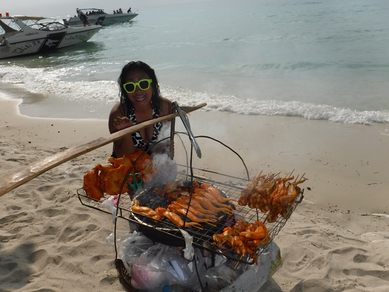หอมกลิ่นฉุย ๆ มาแต่ใกล เล่นน้ำเหนื่อยแล้วก็ต้องเติมพลัง ไก่สะโพกนี่ชิ้นละ 100 ส่วนปีกไม้ละ 40 ข้าวเหนียว 10 บาท ที่มีราคาแพงเพราะพวกพี่ ๆ เค๊าต้องจ่ายค่ากำจัดขยะให้กับทางอุทยานน่ะคะ