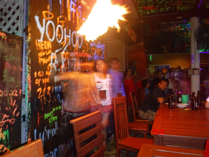 โชว์กระบองไฟที่นี่จัดว่าเด็ด เพราะเขาจะเดินฝ่าวงลูกค้ากันเลย และให้ลูกค้าร่วมเล่นกับพวกเขาด้วย