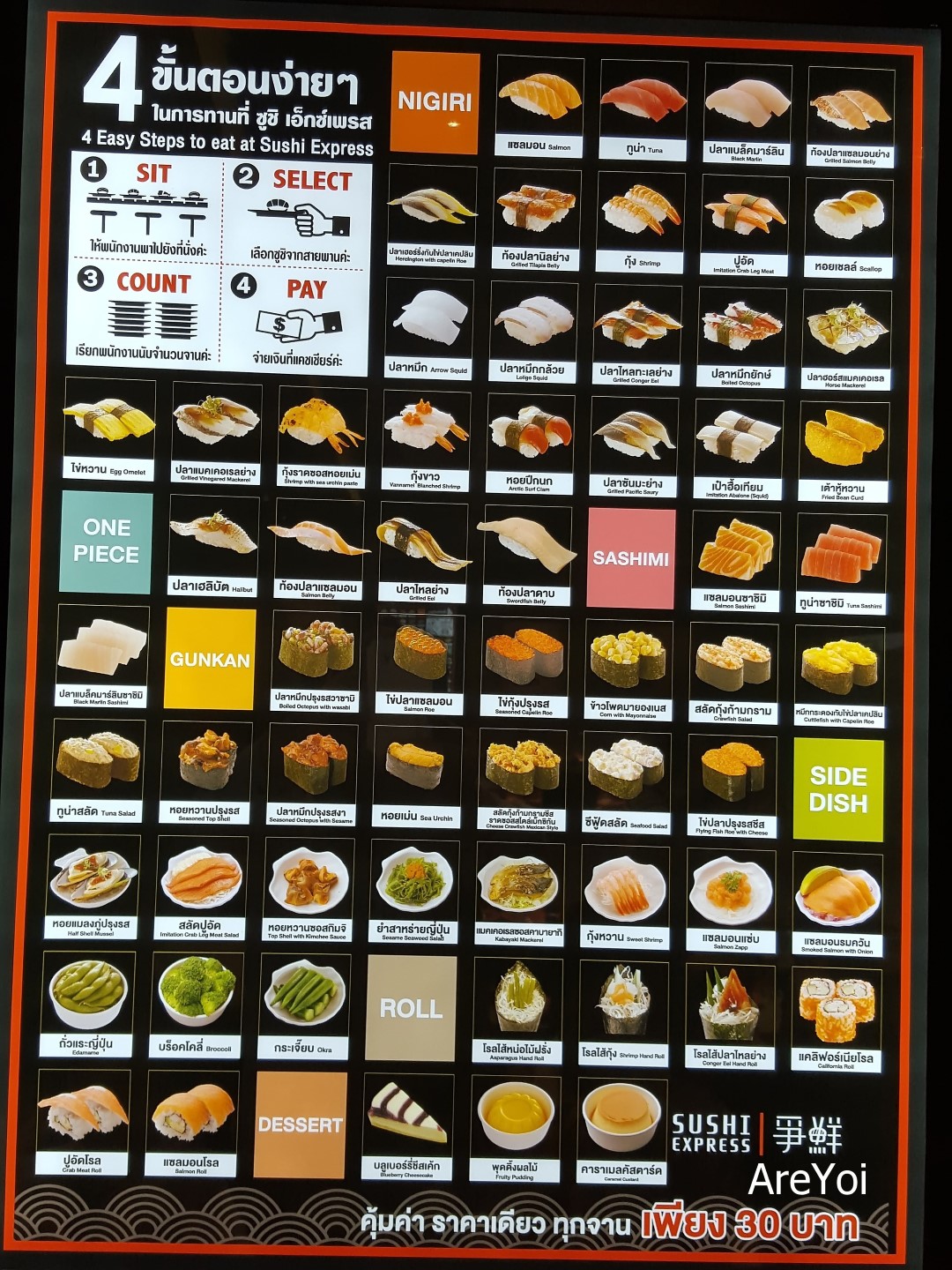ซูชิมีให้เลือกจำนวนมาก ผมเลือกหยิบกินเฉพาะที่อยาก เลยมีรูปมาเฉพาะหน้าที่ผมกิน จึงไม่ได้ถ่ายครบทุกเมนูเหมือนรีวิว SR ทั่วไปครับ