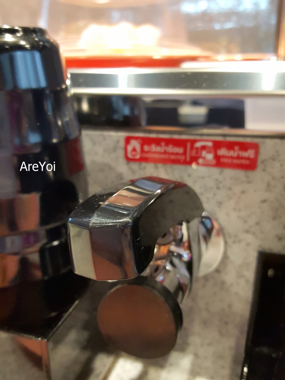 ส่วนน้ำดื่มหยิบแก้วไปตักน้ำแข็งเอง น้ำดื่มน้ำอัดลมจัดอยู่ที่นึง ส่วนน้ำร้อนเปิดก๊อกใส่น้ำชาตรงที่นั่งได้เลยครับ