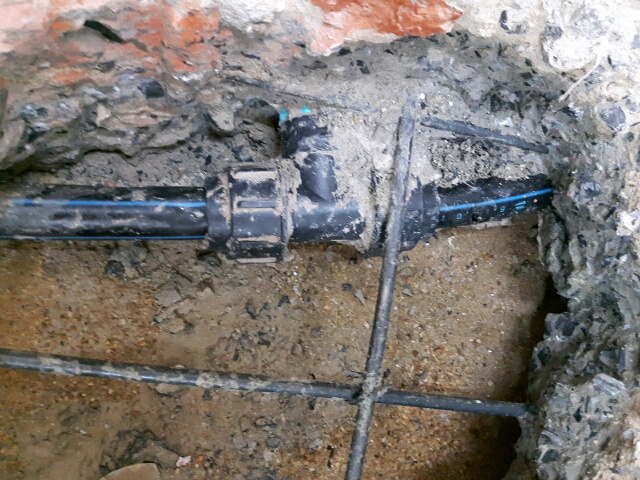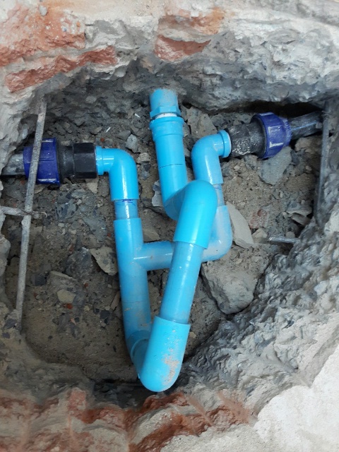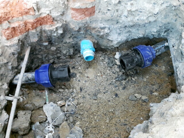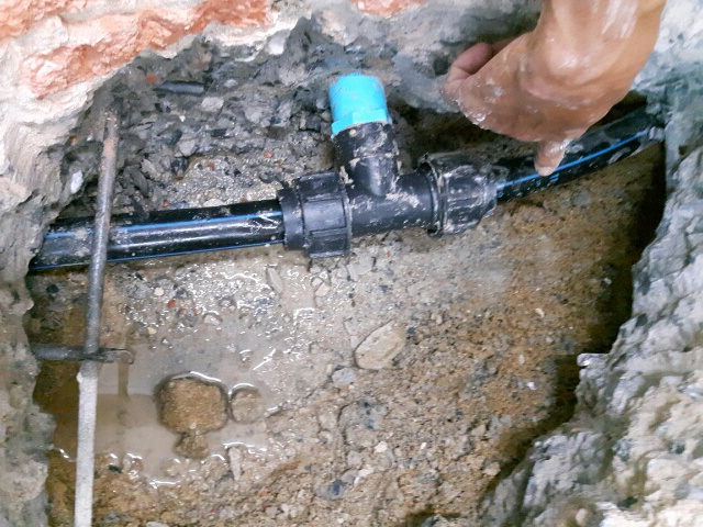 ภาพจุดที่ท่อรั่วคือ รั่วที่ท่อHDPEทั้ง2ฝั่งก่อนจะต่อเข้า3ทาง คือช่างตอนผูกเหล็กอาจพลาดเจาะโดนท่อ