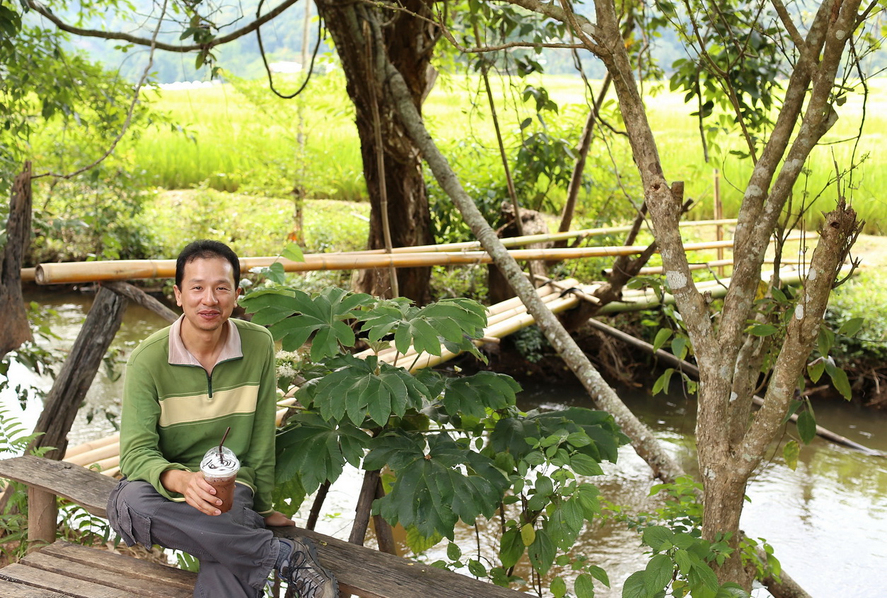 คุณพ่อนั่งจิบโกโก้ เคล้าเสียงลำธาร