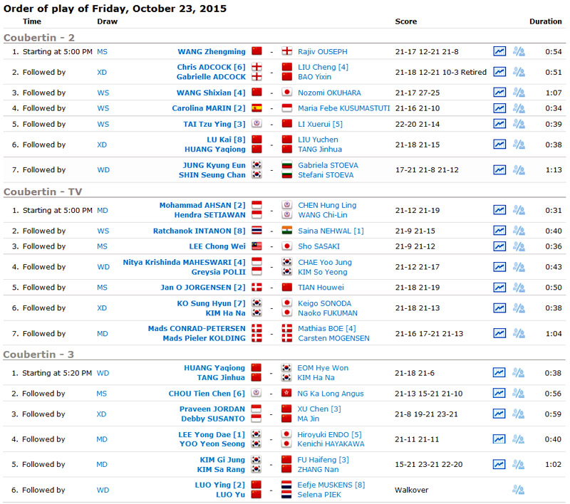 คลิปแบดมินตัน Yonex French Open 2015 [23 ต.ค. 58] : รอบก่อนรองชนะเลิศ