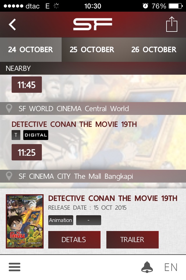 ผมกับแฟนเพิ่งมีเวลาว่างมาดู โคนัน เดอะมูฟวี่ ในวันที่ 24 ตุลาคม 2558
